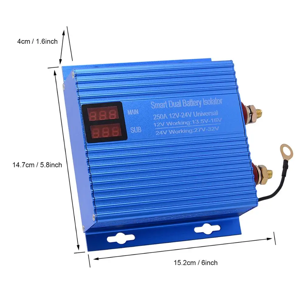 Amazon Com Aramox Battery Isolator 12v 24v 250a Automotive Dual Batteries Isolator Black Power Battery Protector With Led Indicator For Car Rv Automotive