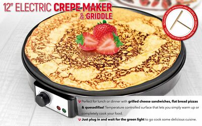 12 Electric Crepe Pancake Maker Machine Hot Plate Griddle Non Stick 1000w Ebay